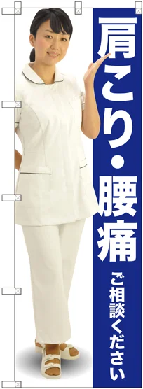 店舗やお店を盛り上げるのぼり旗。表示内容は、肩こり・腰痛 ご相談くださいです。