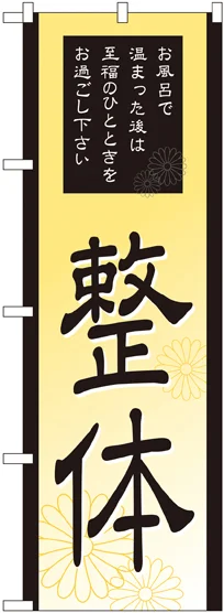店舗やお店を盛り上げるのぼり旗。表示内容は、整体です。