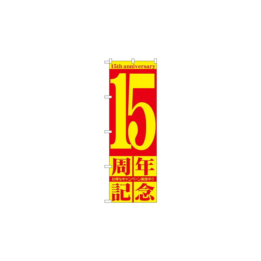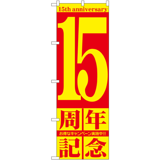 店舗やお店を盛り上げるのぼり旗。表示内容は、15周年記念です。