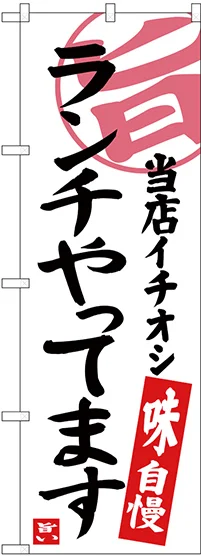 店舗やお店を盛り上げるのぼり旗。表示内容は、ランチやってます 当店イチオシです。