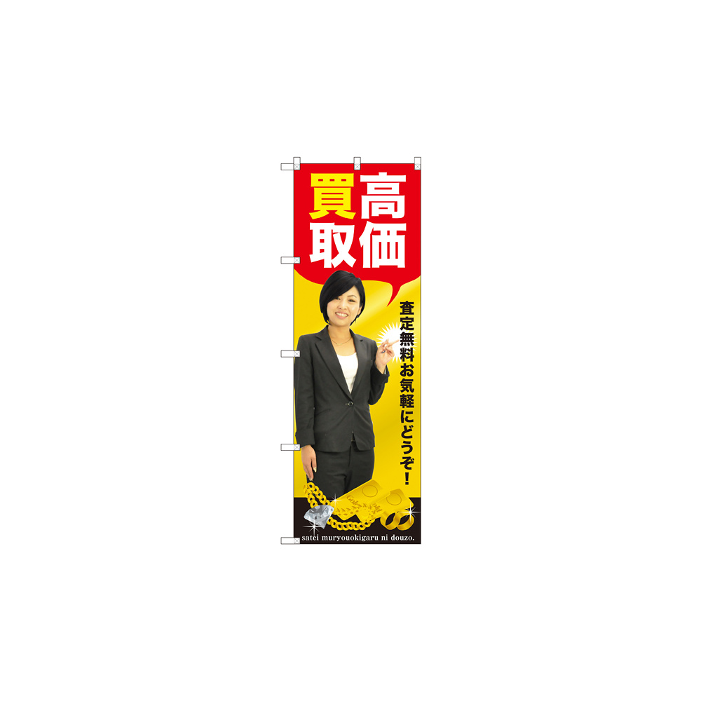 店舗やお店を盛り上げるのぼり旗。表示内容は、高価買取です。