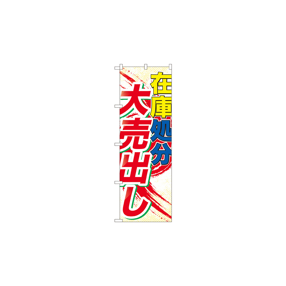 店舗やお店を盛り上げるのぼり旗。表示内容は、在庫処分大売出しです。