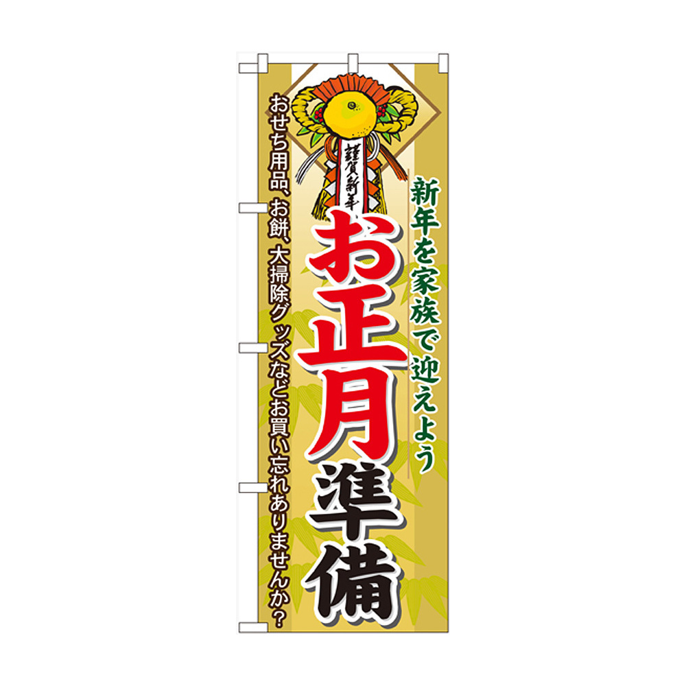 店舗やお店を盛り上げるのぼり旗。表示内容は、お正月準備です。