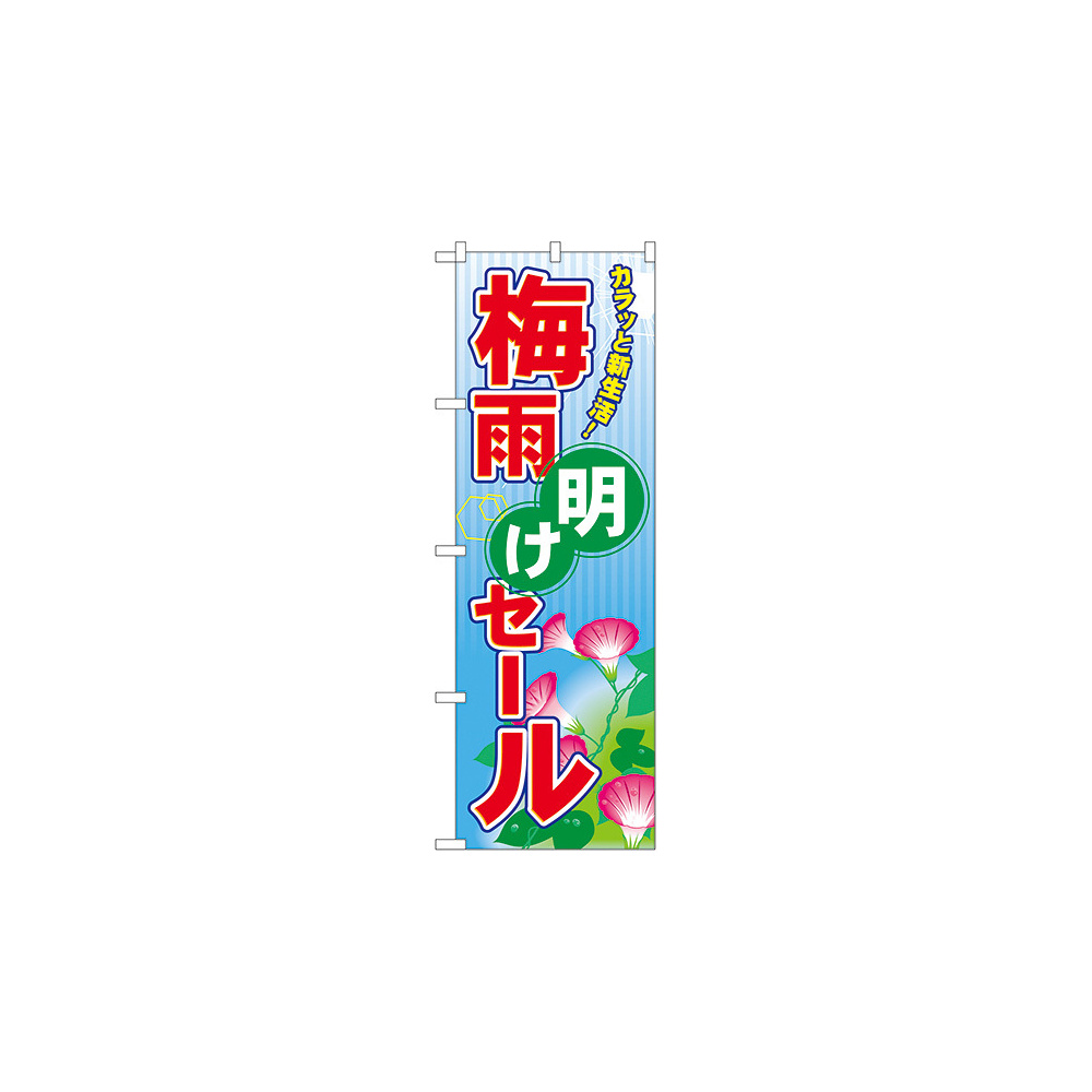 店舗やお店を盛り上げるのぼり旗。表示内容は、梅雨明けセールです。