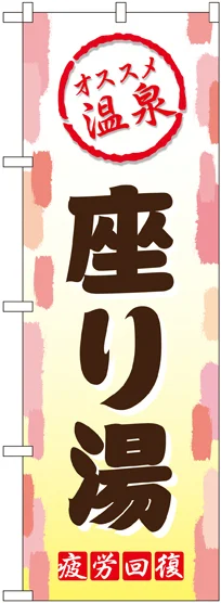 店舗やお店を盛り上げるのぼり旗。表示内容は、座り湯です。