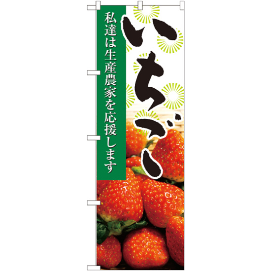 店舗やお店を盛り上げるのぼり旗。表示内容は、いちご 写真です。