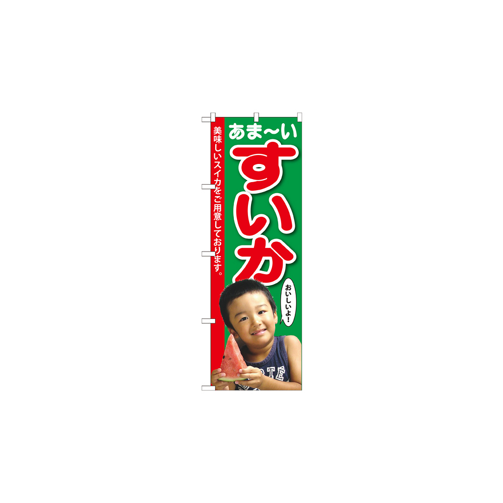 店舗やお店を盛り上げるのぼり旗。表示内容は、すいか 子供写真 1人です。