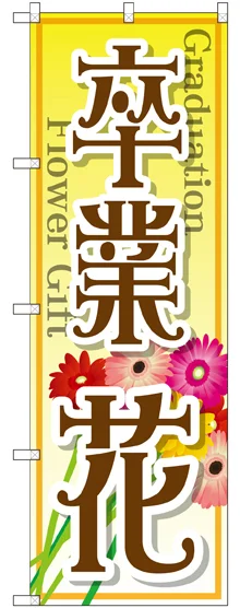 店舗やお店を盛り上げるのぼり旗。表示内容は、卒業 花です。