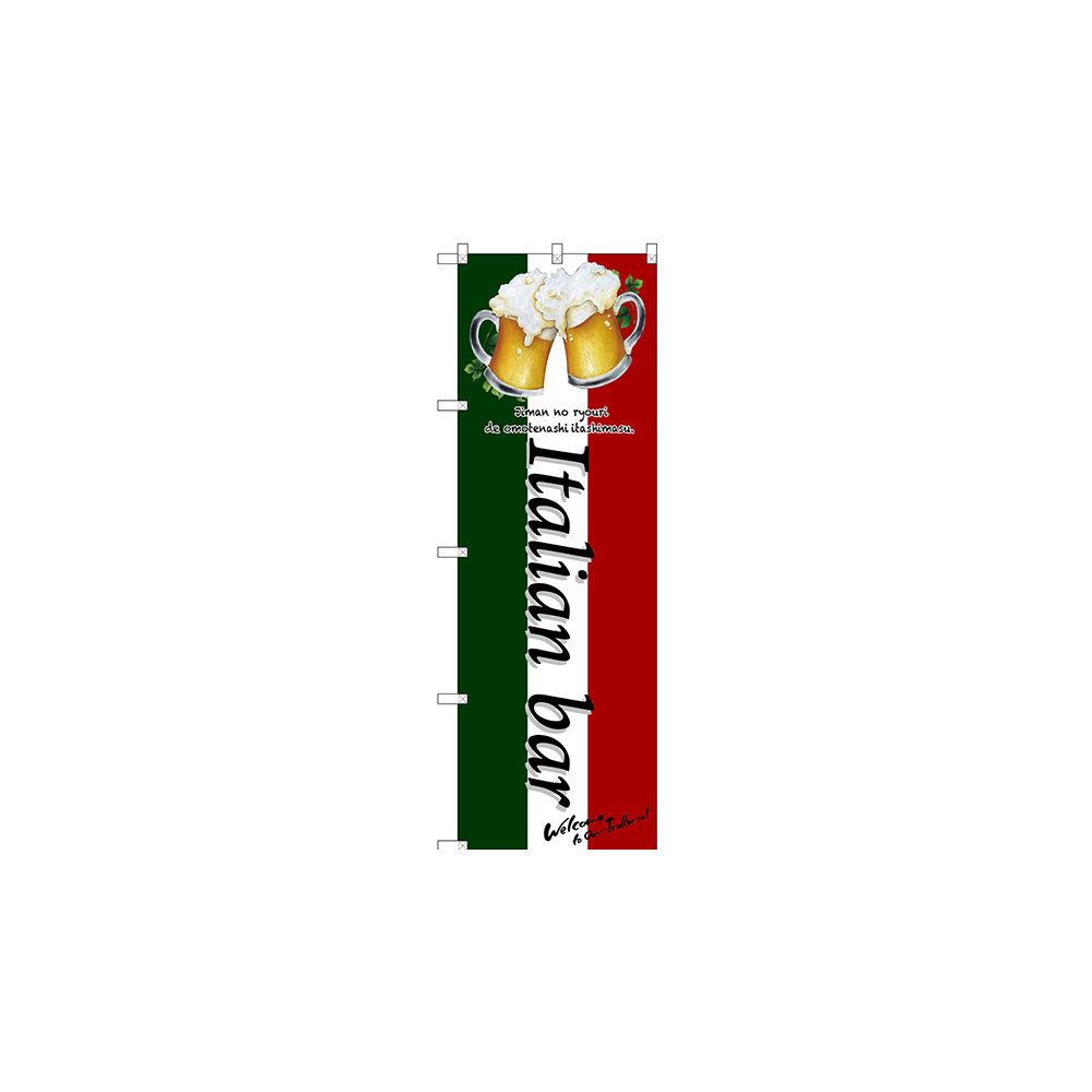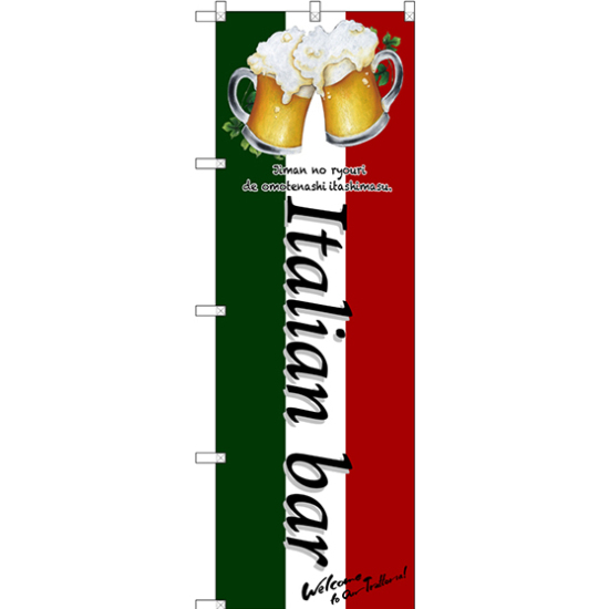店舗やお店を盛り上げるのぼり旗。表示内容は、Italian bar (乾杯)です。