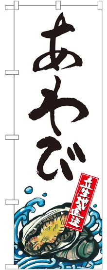 店舗やお店を盛り上げるのぼり旗。表示内容は、あわび 産地直送 白です。