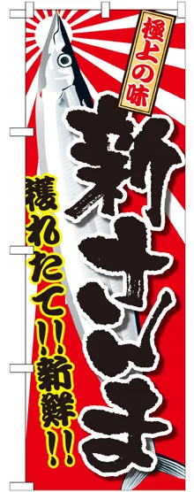 店舗やお店を盛り上げるのぼり旗。表示内容は、新さんまです。
