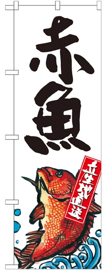 店舗やお店を盛り上げるのぼり旗。表示内容は、赤魚 産地直送 白です。