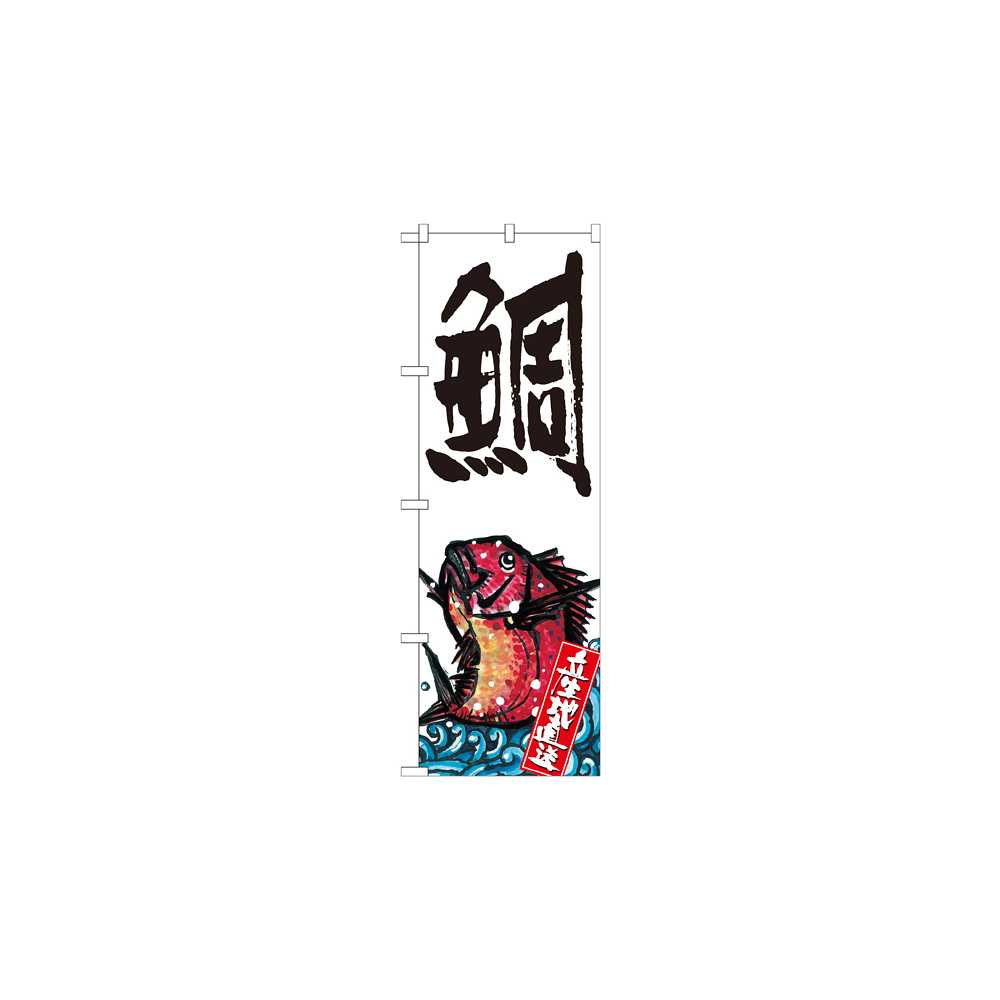 お寿司屋、和食店、海鮮丼屋、スーパーの鮮魚コーナーなど 鯛料理などを取り扱われている店舗様向けののぼり旗です。 遠目から見てアイキャッチ抜群ののぼり旗で、自慢の商品をPRしてみませんか?