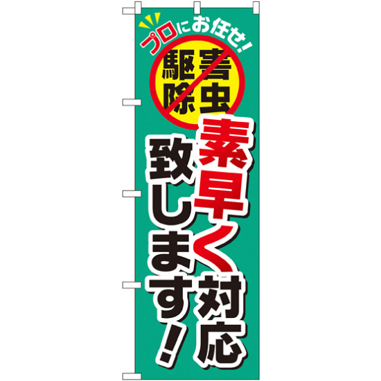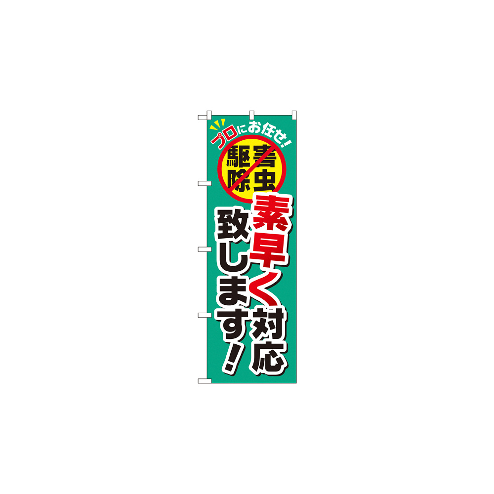 店舗やお店を盛り上げるのぼり旗。表示内容は、素早く対応致します!です。