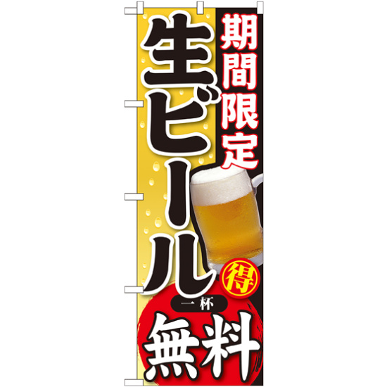 商品説明:のぼり旗 期間限定 生ビール 一杯無料 (SNB-178)