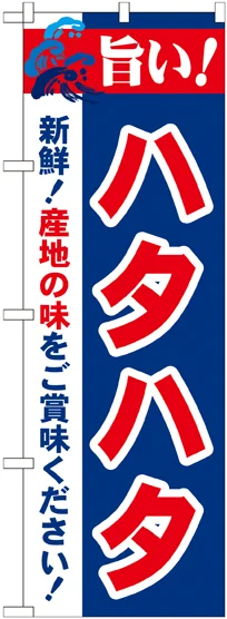 店舗やお店を盛り上げるのぼり旗。表示内容は、旨い!ハタハタです。