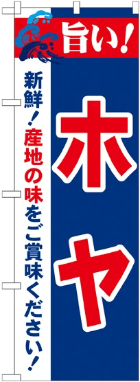 店舗やお店を盛り上げるのぼり旗。表示内容は、旨い!ホヤです。