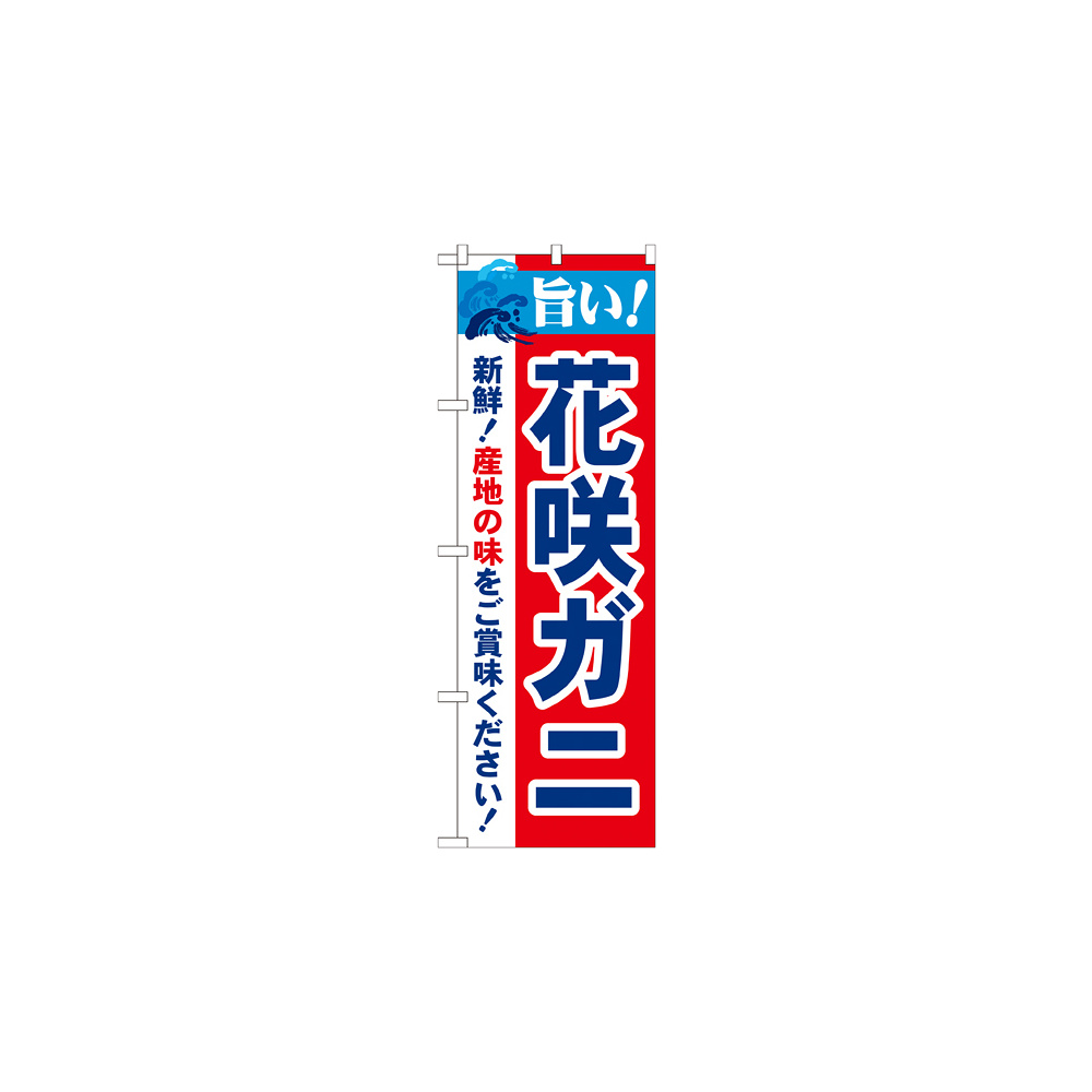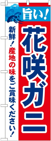 店舗やお店を盛り上げるのぼり旗。表示内容は、旨い!花咲ガニです。