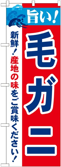 店舗やお店を盛り上げるのぼり旗。表示内容は、旨い!毛ガニです。