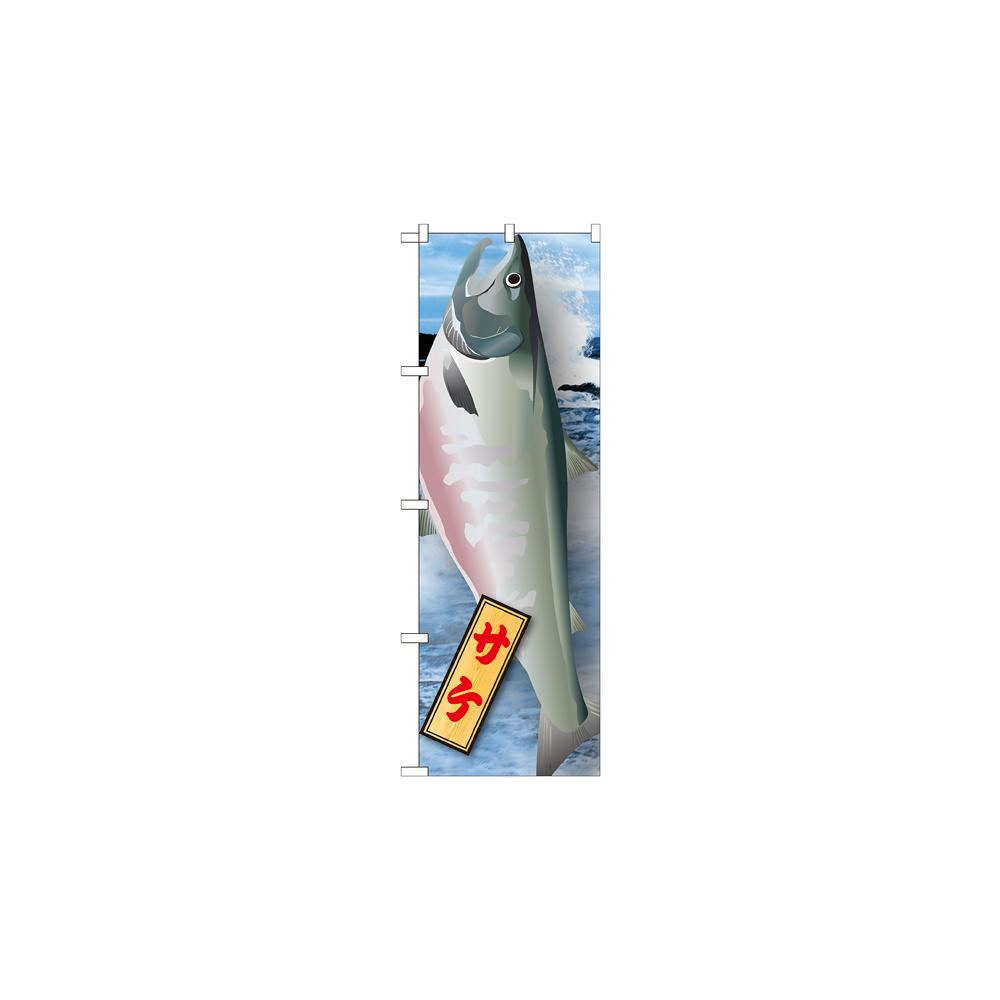 店舗やお店を盛り上げるのぼり旗。表示内容は、サケ 絵旗です。