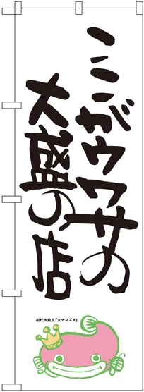 よくある質問:のぼり旗 ここがウワサの大盛の店 ナマズ柄 (SNB-1233)