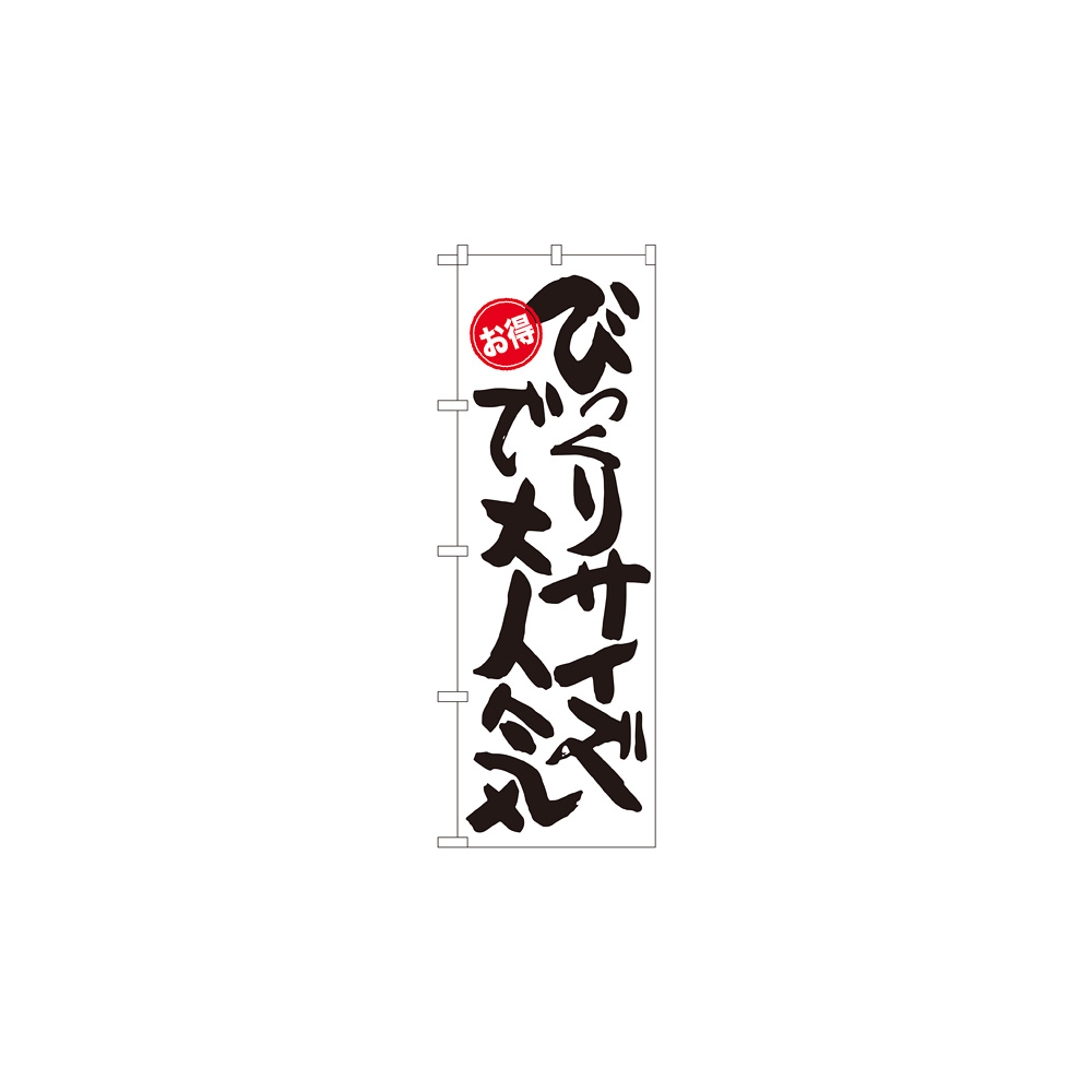 店舗やお店を盛り上げるのぼり旗。表示内容は、びっくりサイズで大人気 お得です。
