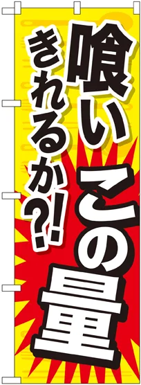 店舗やお店を盛り上げるのぼり旗。表示内容は、喰いきれるか?!この量です。