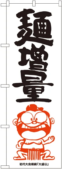店舗やお店を盛り上げるのぼり旗。表示内容は、麺増量 横綱イラストです。