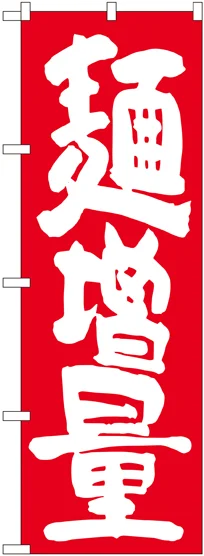 店舗やお店を盛り上げるのぼり旗。表示内容は、麺増量 赤地です。