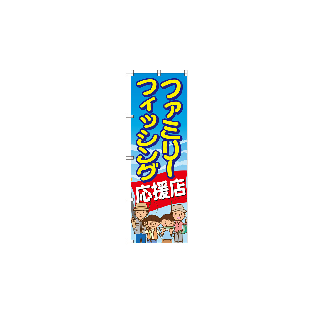 店舗やお店を盛り上げるのぼり旗。表示内容は、ファミリーフィッシング応援店です。