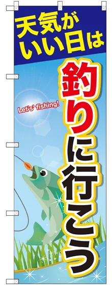店舗やお店を盛り上げるのぼり旗。表示内容は、天気がいい日は釣りにいこうです。
