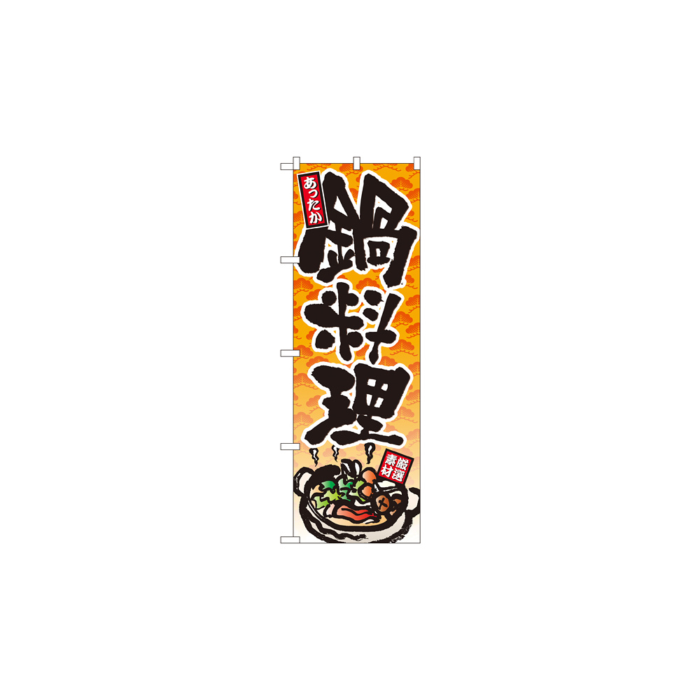 店舗やお店を盛り上げるのぼり旗。表示内容は、鍋料理です。
