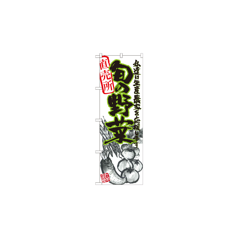 店舗やお店を盛り上げるのぼり旗。表示内容は、旬の野菜 イラストです。