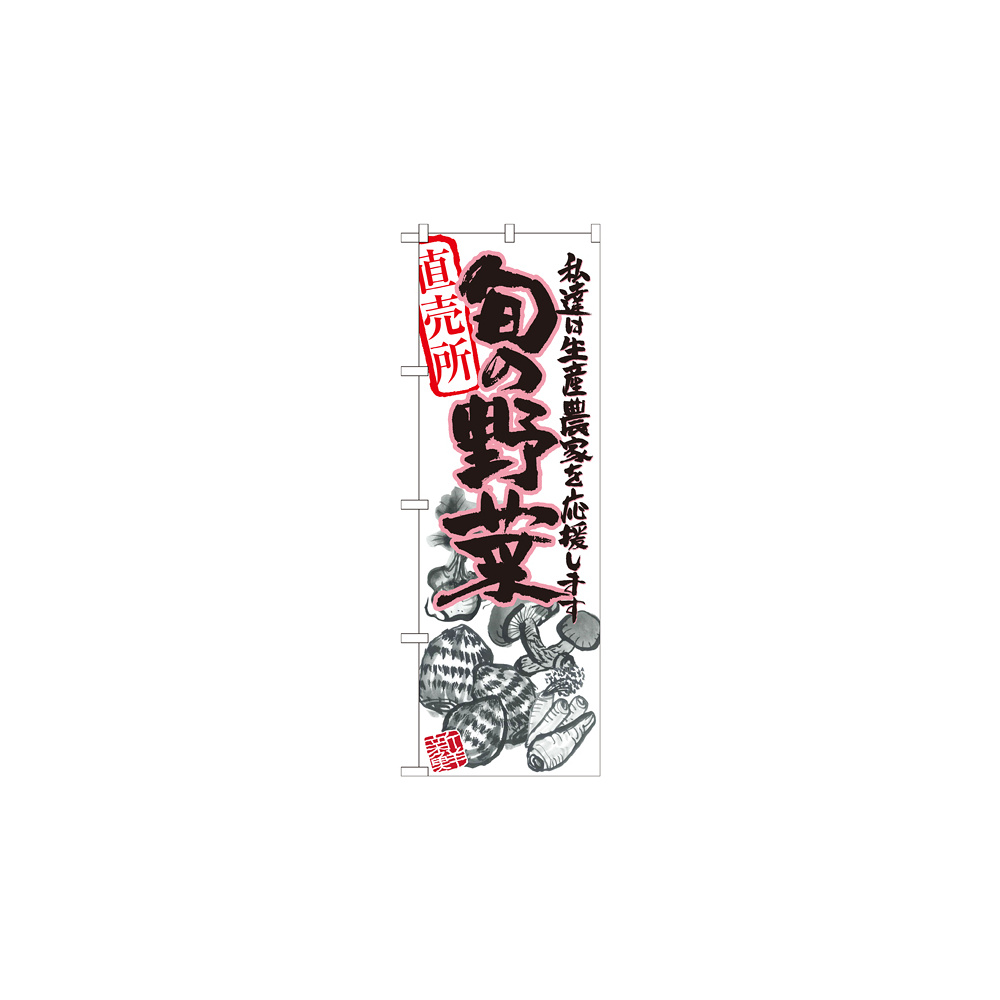 店舗やお店を盛り上げるのぼり旗。表示内容は、旬の野菜 ピンク イラストです。