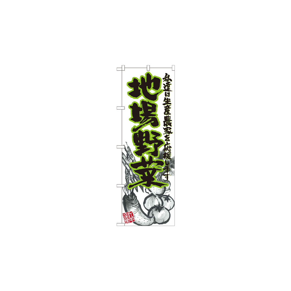 店舗やお店を盛り上げるのぼり旗。表示内容は、地場野菜 イラストです。