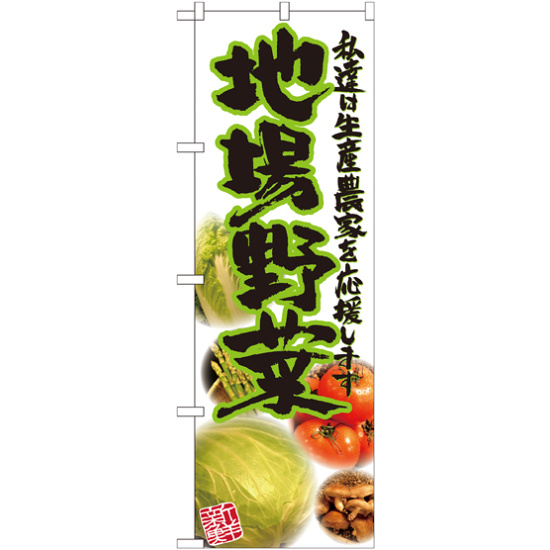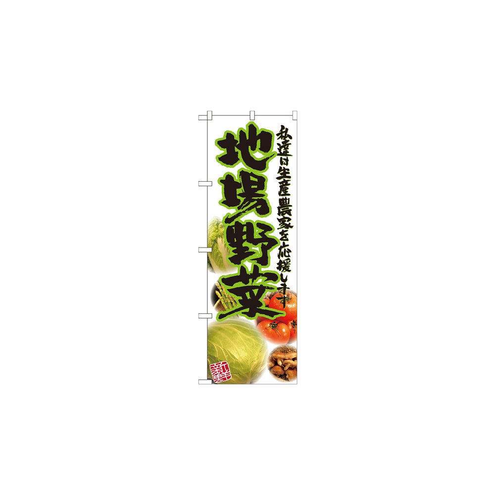 店舗やお店を盛り上げるのぼり旗。表示内容は、地場野菜 写真です。