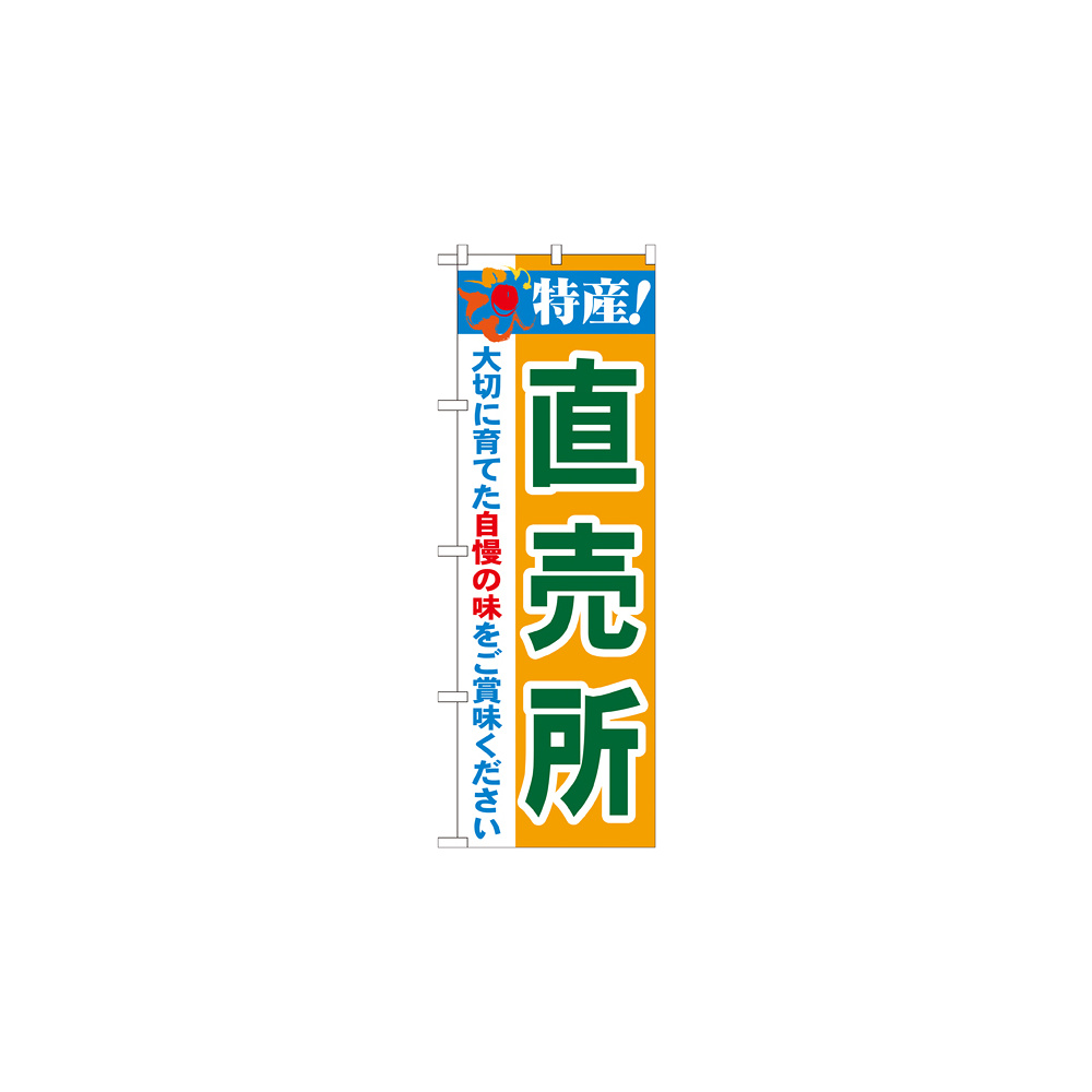 店舗やお店を盛り上げるのぼり旗。表示内容は、特産!直売所です。