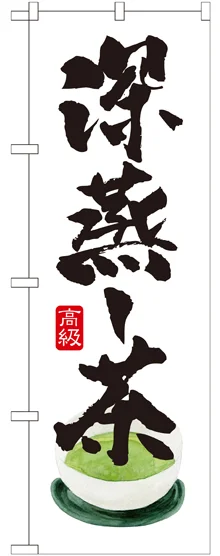 店舗やお店を盛り上げるのぼり旗。表示内容は、深蒸し茶です。