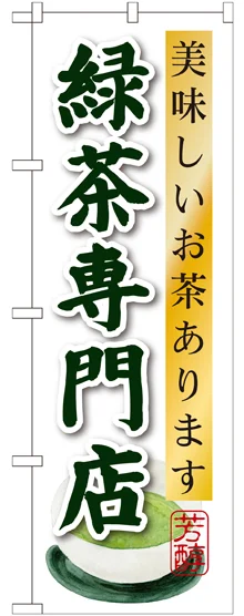 店舗やお店を盛り上げるのぼり旗。表示内容は、緑茶専門店です。
