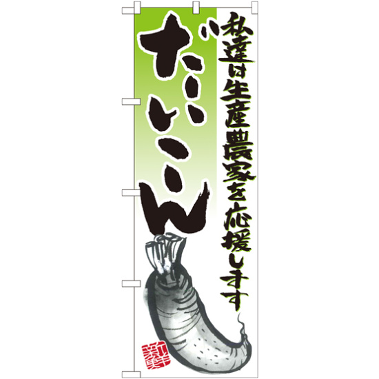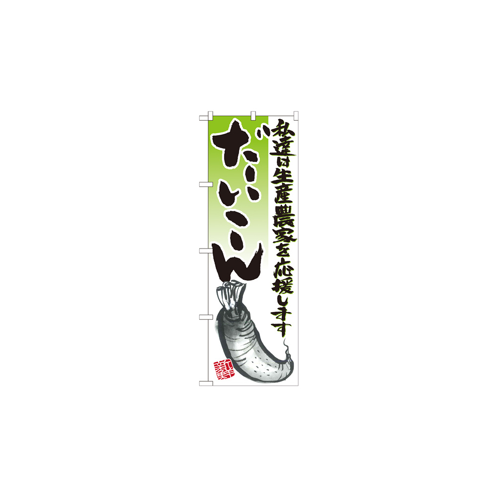 店舗やお店を盛り上げるのぼり旗。表示内容は、だいこん イラストです。