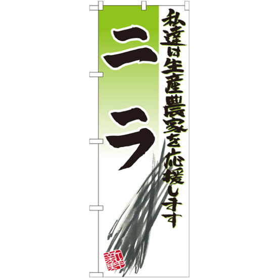 店舗やお店を盛り上げるのぼり旗。表示内容は、ニラ イラストです。