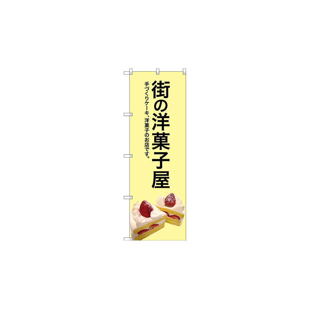 店舗やお店を盛り上げるのぼり旗。表示内容は、街の洋菓子屋 (黄色地)です。