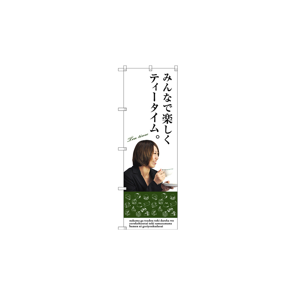 店舗やお店を盛り上げるのぼり旗。表示内容は、みんなで楽しくティータイムです。