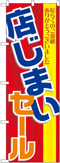 店舗やお店を盛り上げるのぼり旗。表示内容は、店じまいセールです。