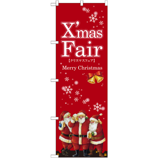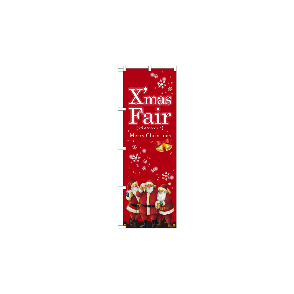 店舗やお店を盛り上げるのぼり旗。表示内容は、Xmas Fair赤 サンタです。