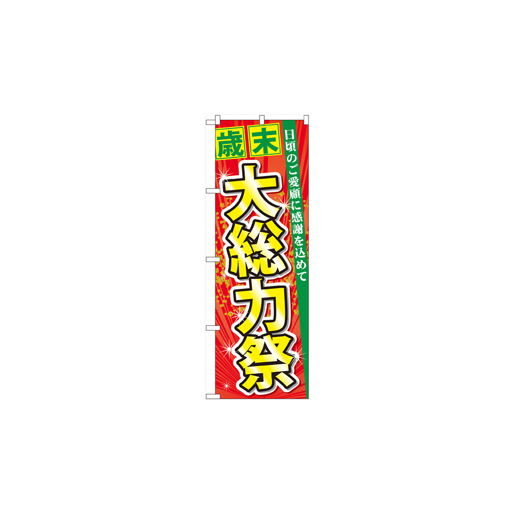 店舗やお店を盛り上げるのぼり旗。表示内容は、歳末 大総力祭です。