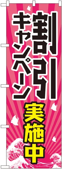 店舗やお店を盛り上げるのぼり旗。表示内容は、割引キャンペーン実施中です。