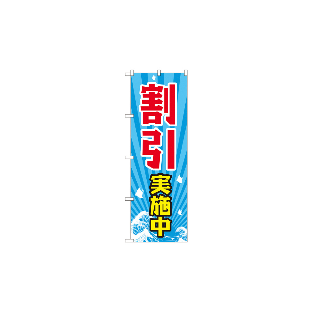 店舗やお店を盛り上げるのぼり旗。表示内容は、割引実施中です。