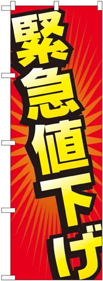 店舗やお店を盛り上げるのぼり旗。表示内容は、緊急値下げです。