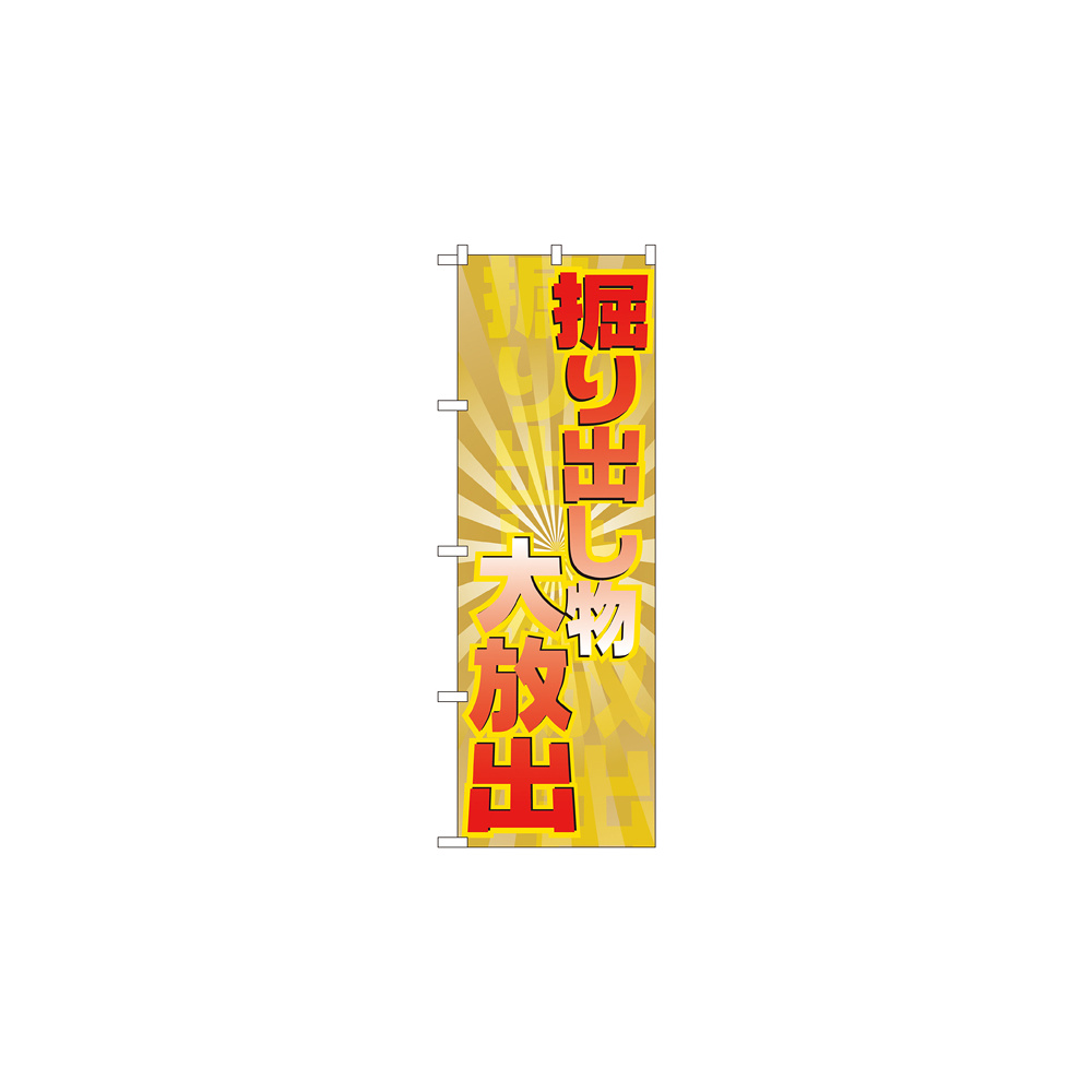 店舗やお店を盛り上げるのぼり旗。表示内容は、掘り出し物大放出です。